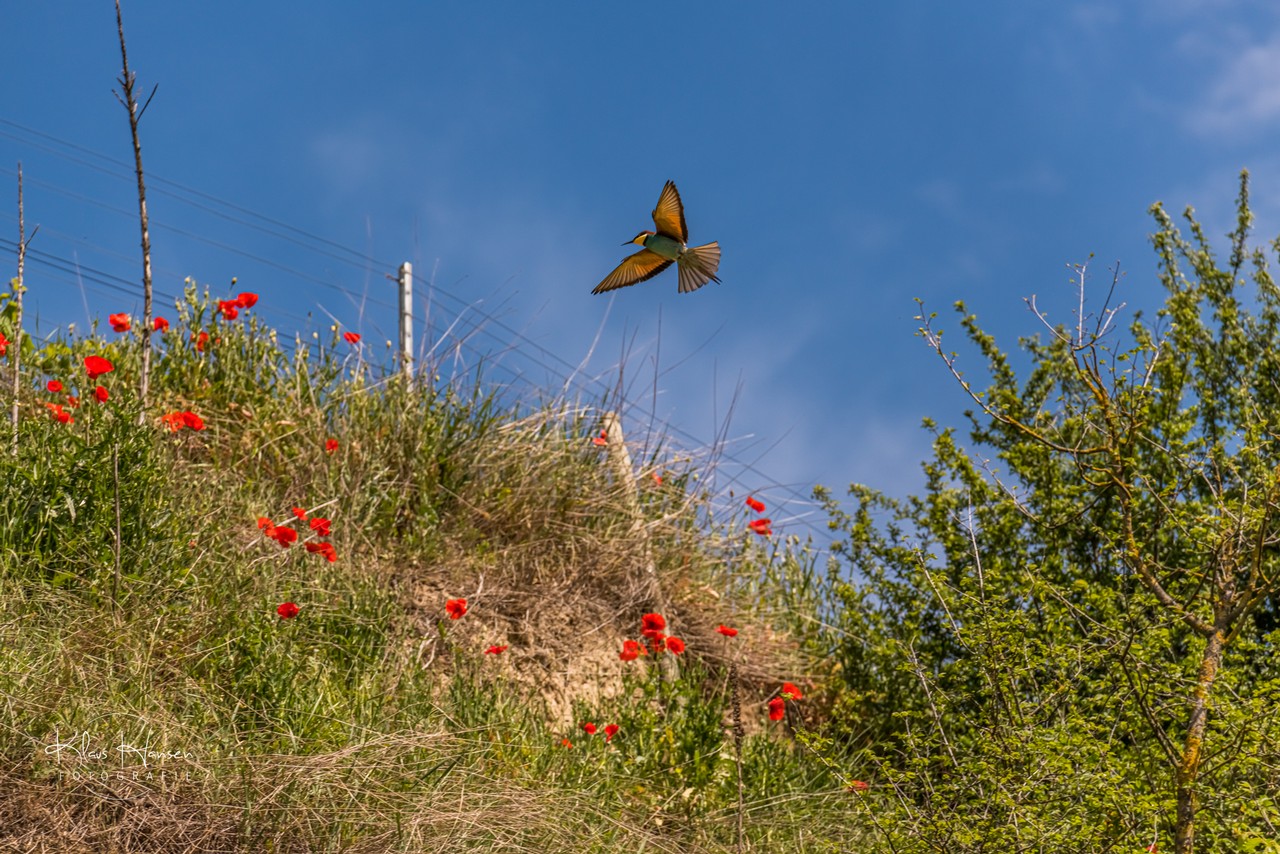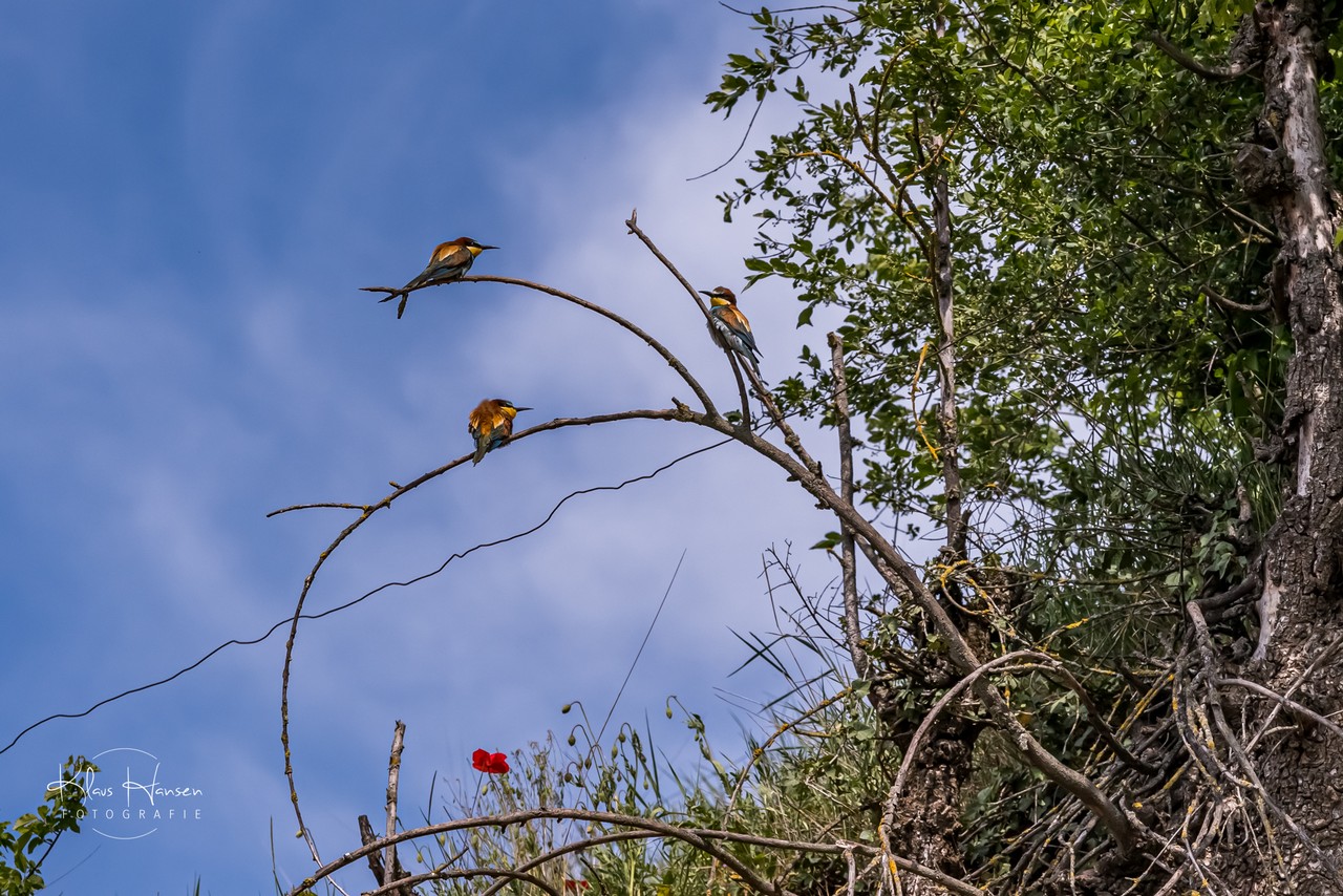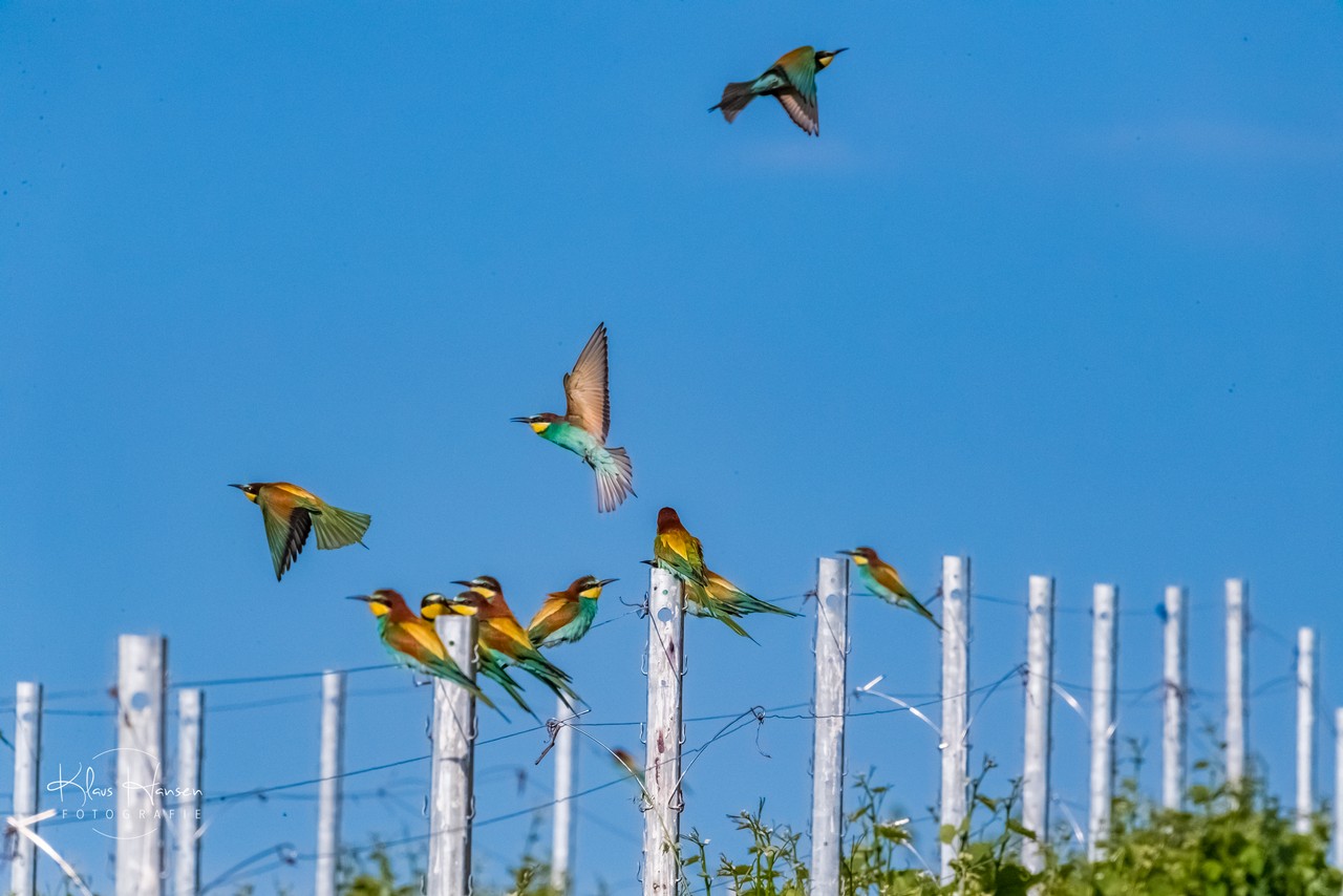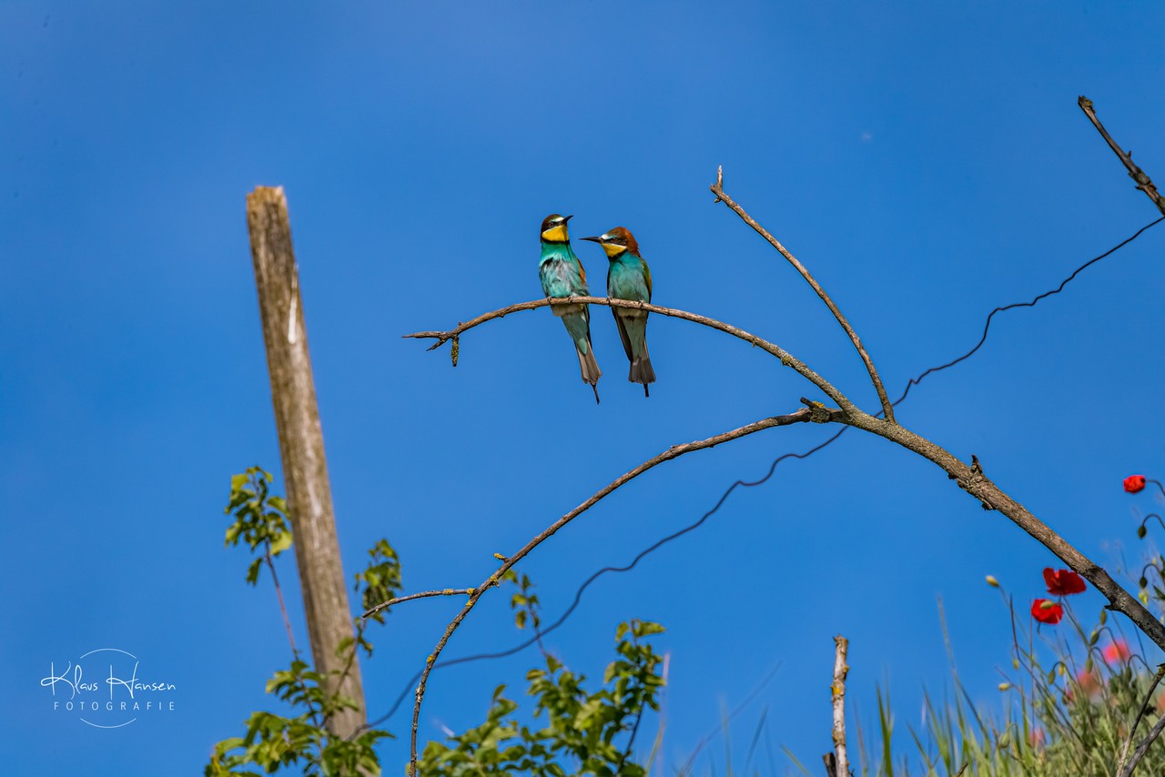 Mai 2020 Bienenfresser und Wiedehopf die am Kaiserstuhl über den Sommer kommen um ihre Jungen zu bekommen und dann im Winter wieder nach Afrika fliegen. Sie jagen Bienen, Hummel, Libellen und die Blaue Holz Biene die auch aus dem Mittelmeer hierkommt.