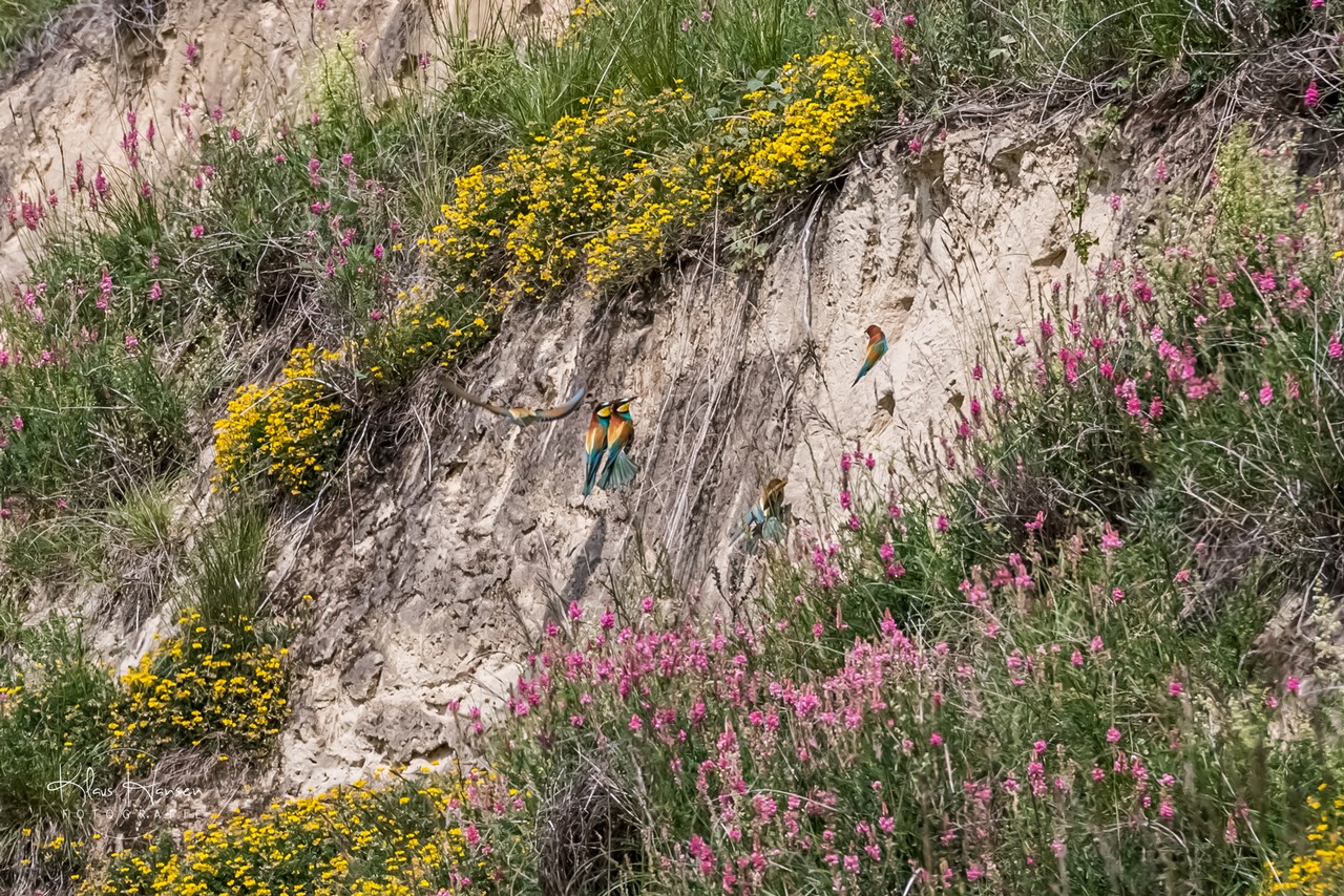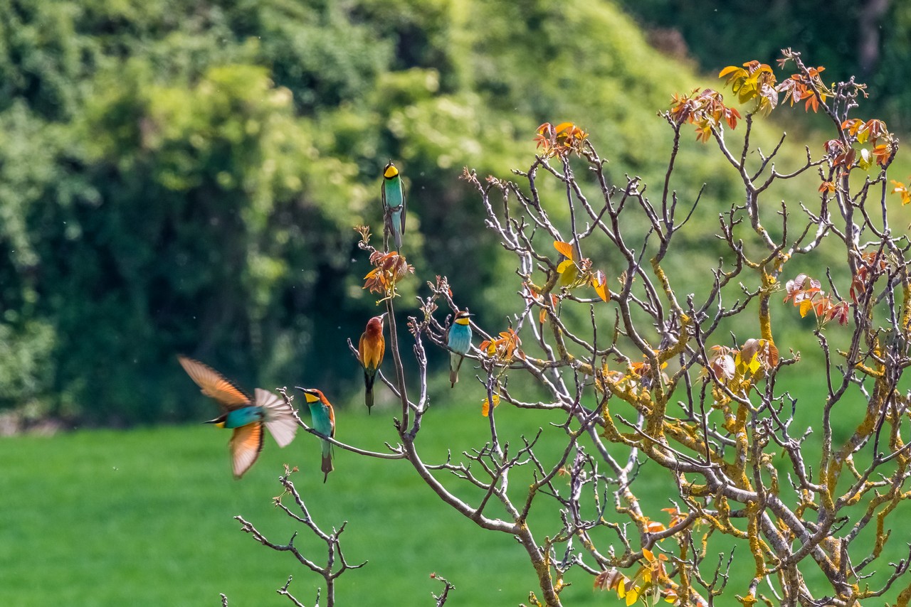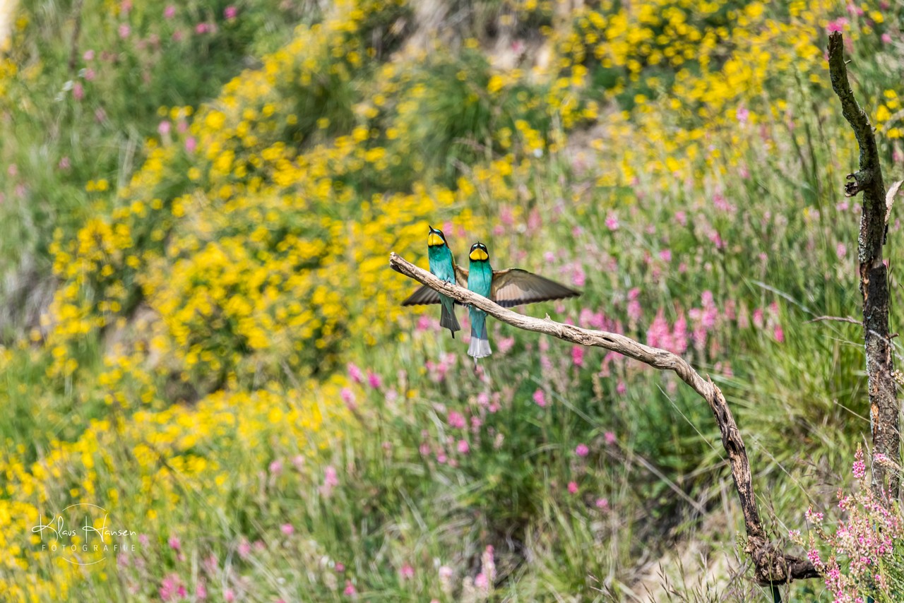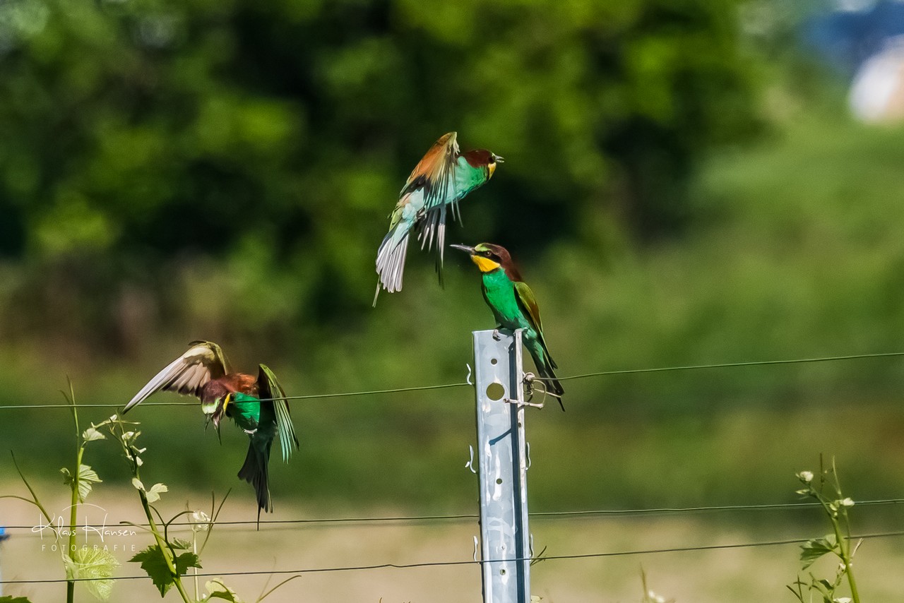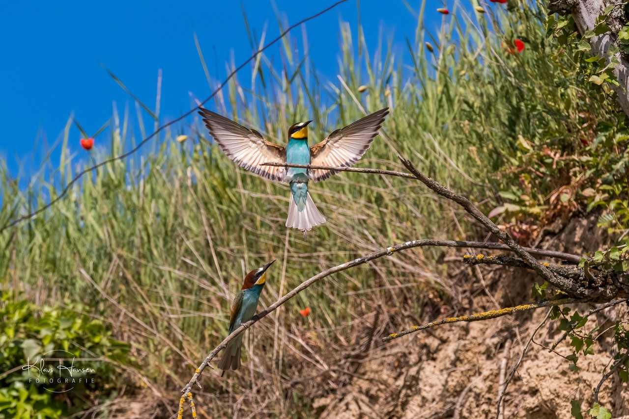 Mai 2020 Bienenfresser und Wiedehopf die am Kaiserstuhl über den Sommer kommen um ihre Jungen zu bekommen und dann im Winter wieder nach Afrika fliegen. Sie jagen Bienen, Hummel, Libellen und die Blaue Holz Biene die auch aus dem Mittelmeer hierkommt.