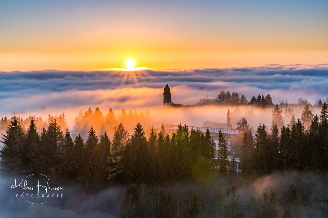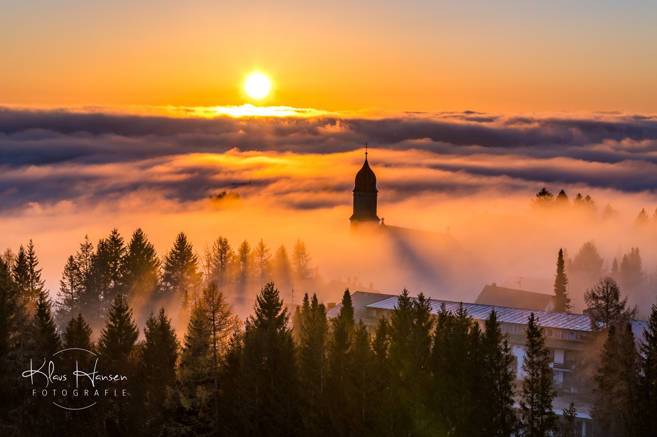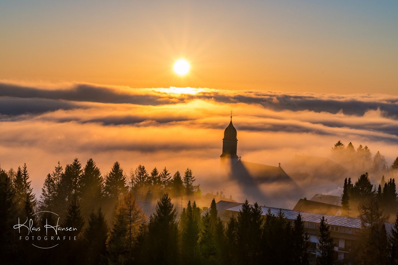 Unglaublicher Sonnenaufgang in Höchenschwand "das Dorf am Himmel" zur Abwechslung "Dorf im Nebel"!