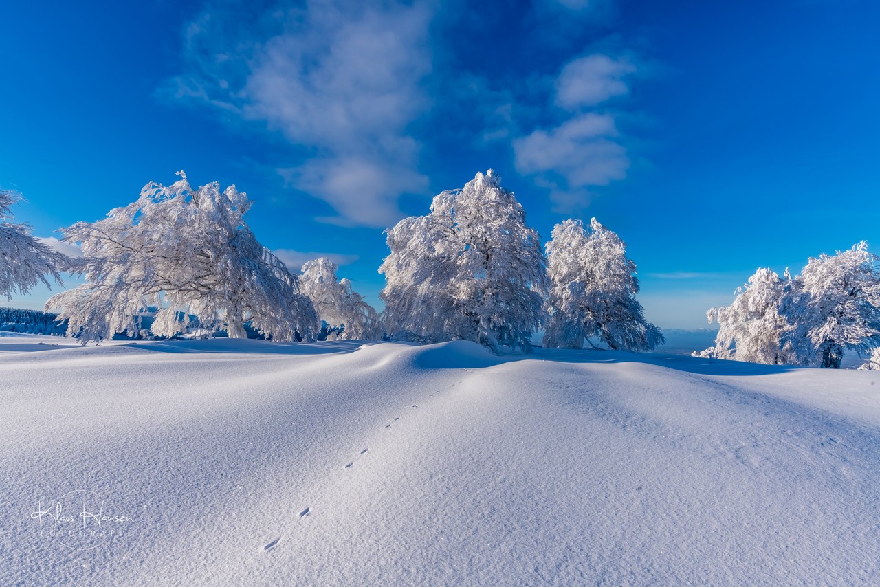 Die Wetterbuchen nach einem Schneesturm bei stahlendem Sonnenschein für mch ganz alleine geniesen zu können